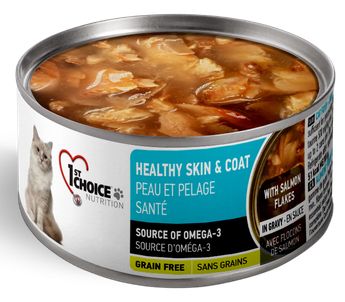 1st CHOICE ADULT HEALTHY SKIN AND COAT SALMON CANNED FLAKES CAT - 85G