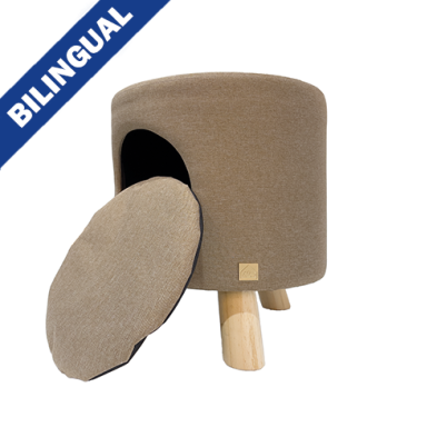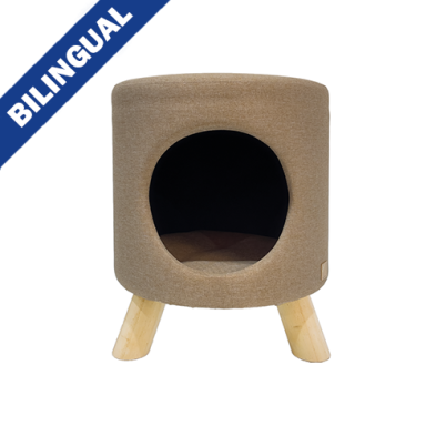 Polyester fabric stool and pet nook with wooden legs. A versatile and functional piece that serves as both a foot stool and seating stool. Featuring soft and plush interior that provides a cozy retreat for your fur family member to curl up and relax. The minimalist design of the Wallie is sure to complement any decor, whether it's placed in the living room, bedroom, or even in a home office.