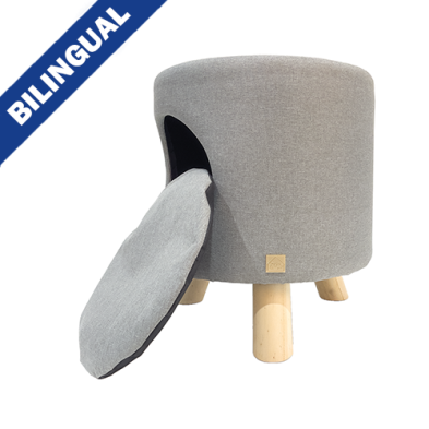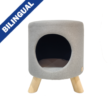 Polyester fabric stool and pet nook with wooden legs. A versatile and functional piece that serves as both a foot stool and seating stool. Featuring soft and plush interior that provides a cozy retreat for your fur family member to curl up and relax. The minimalist design of the Wallie is sure to complement any decor, whether it's placed in the living room, bedroom, or even in a home office.