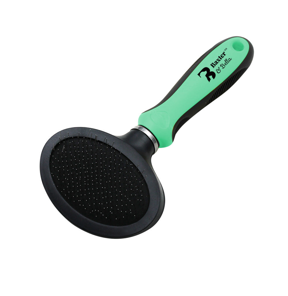 Baxter & Bella Oval Head Slicker Brush is the perfect grooming accessory for your feline friend. Designed to reach difficult spots and aid with removing loose hairs, mats, and tangles. The metal bristles can reach into the undercoat for those problematic mats and tangles and comfortable to hold thanks to its non-slip, ergonomic handle for a fun and pleasant grooming experience.