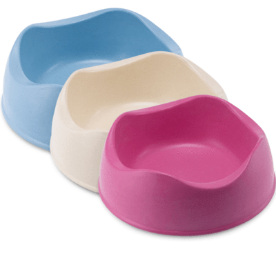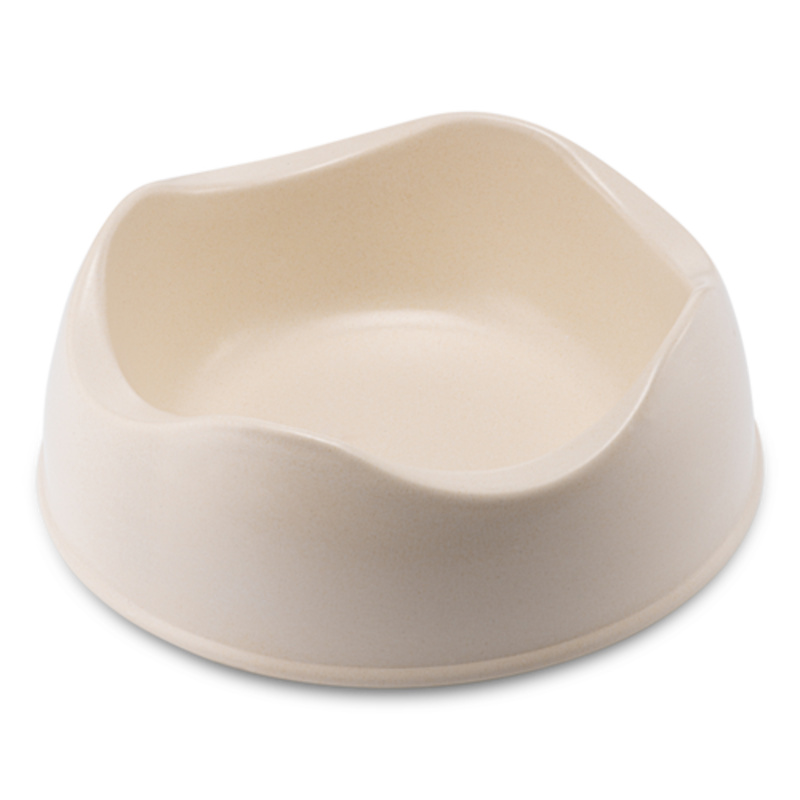 A food and water bowl made with plant-based materials including bamboo to help reduce our dependence on petroleum plastics. Instead, using renewable resources. Each bowl has an easy pick-up handle and a non-slip base.