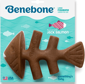 These Benebone Fishbone are made with tough nylon and 100% natural Jack Salmon to add a burst of flavour to keep your dog chewing. The ingredients are sourced within the U.S.A. and are safe for chewing. However, please note that these toys are not considered edible, so we recommend supervision at all times when choosing this toy for playtime.