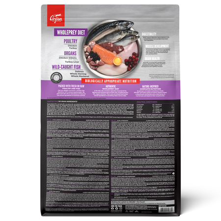 - Our authentic WholePrey diet features the most succulent parts of the prey like poultry or fish, organs and bone to mimic what your cat’s ancestors consumed in the wild.