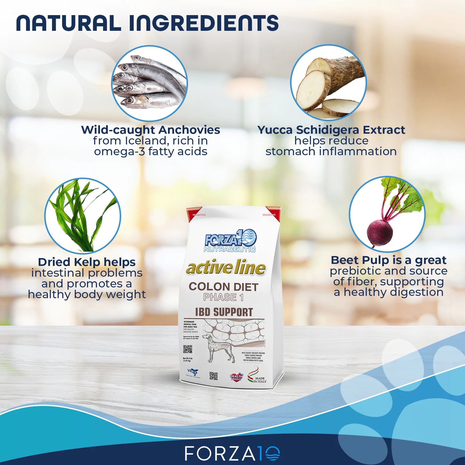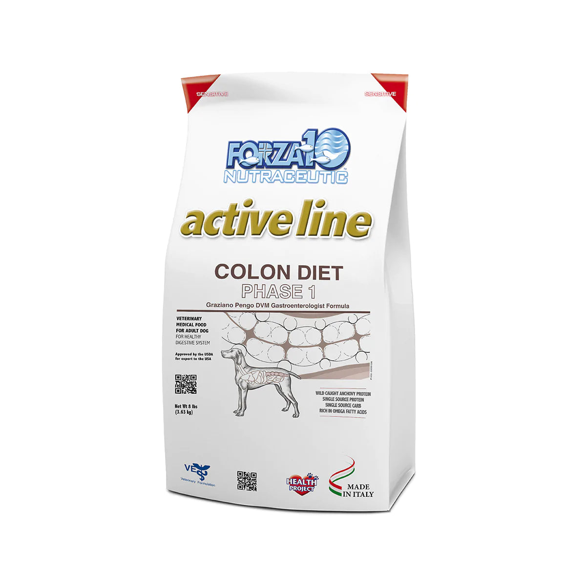 Forza10 Active Colon is designed for dogs with sensitives tummies.