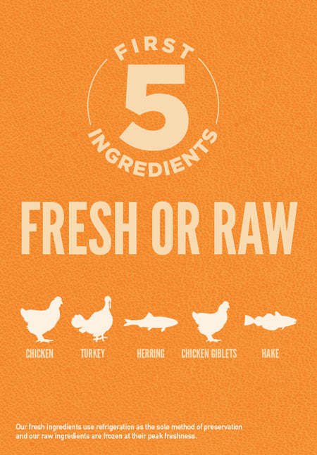 - The first 5 ingredients are fresh or raw poultry and fish ingredients.