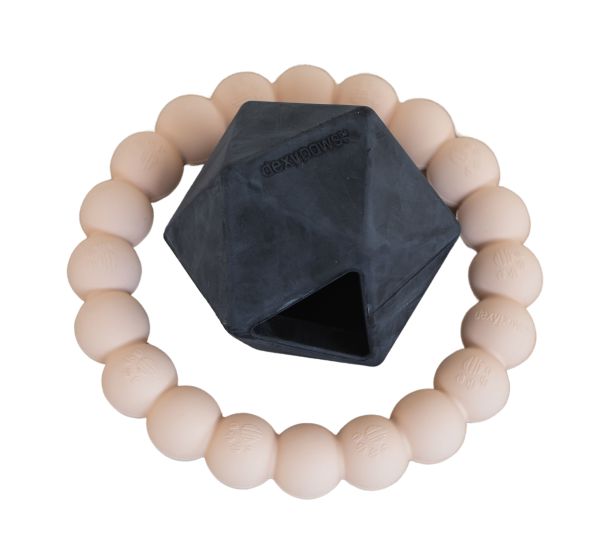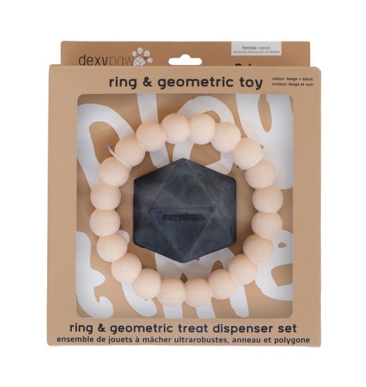 Dexypaws 2 Piece Aggressive Ring and Geometric Treat Dispenser Set, Beige and Black Dog 1pc