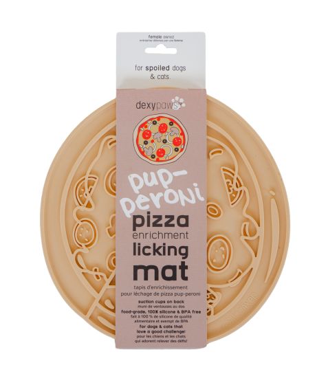 Dexypaws Pup-Peroni Pizza Enrichment Licking Mat, Yellow Cat & Dog