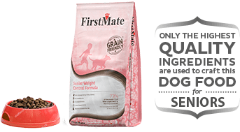 FirstMate Senior/Weight Control Dog Food Formula is made in a family-owned facility in British Columbia and is ideal for dogs of all breeds and life stages.