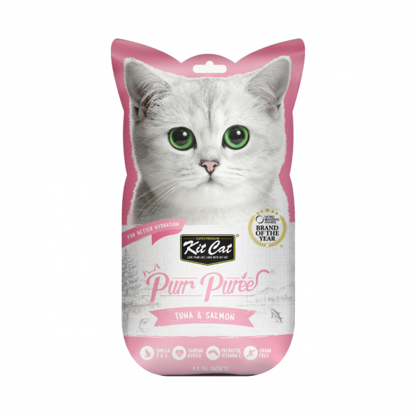 Kit Cat® Purr Purées® cat treats are created by nutritionists who are cat lovers and are made with goodness of carefully selected natural ingredients. This recipe contains a smooth blend of chicken or tuna. with no added colors or preservatives and is perfect for cats of all life stages. Grain-Free, delicious and 100% Natural – this will be the most irresistible and ideal treat your cat will crave.