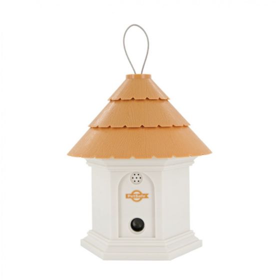 When the PetSafe® Deluxe Outdoor Bark Control is within range of a barking dog, an internal microphone picks up the sound and the unit is automatically activated. The Deluxe Outdoor Bark Control emits an ultrasonic sound that can be heard by dogs but is silent to most humans. Startled by the high-pitched sound, the dog should stop barking as it will associate its bark with this unpleasant noise. The digital timer can be programmed to turn the unit on and off at specific times during the day and night. The PetSafe® Deluxe Outdoor Bark Control is weatherproof and designed to easily hang from a tree or hook in your garden. It can also be placed on your garden ledge. Always ensure the unit is facing and within the 15 m range of the barking dog.