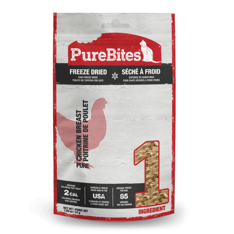 At PureBites, we’re always asking pet parents to “Go ahead, look at our ingredients”. PureBites RAW freeze dried chicken breast cat treats are the ultimate high-value limited ingredient treat or topper. Made with only 1 simple human grade ingredient you can read, pronounce, and trust: 100% pure American chicken breast. Nothing else. No artificial colors, fillers, or sweeteners. Proudly sourced and made in the USA using a delicate freeze drying process that helps preserve fresh RAW whole food, locking in the taste cats crave and the high protein / low calorie nutrition that pet parents love. Freeze dried treats are a great compliment to a RAW diet since they retain many of the benefits of RAW without the hassle of refrigeration.