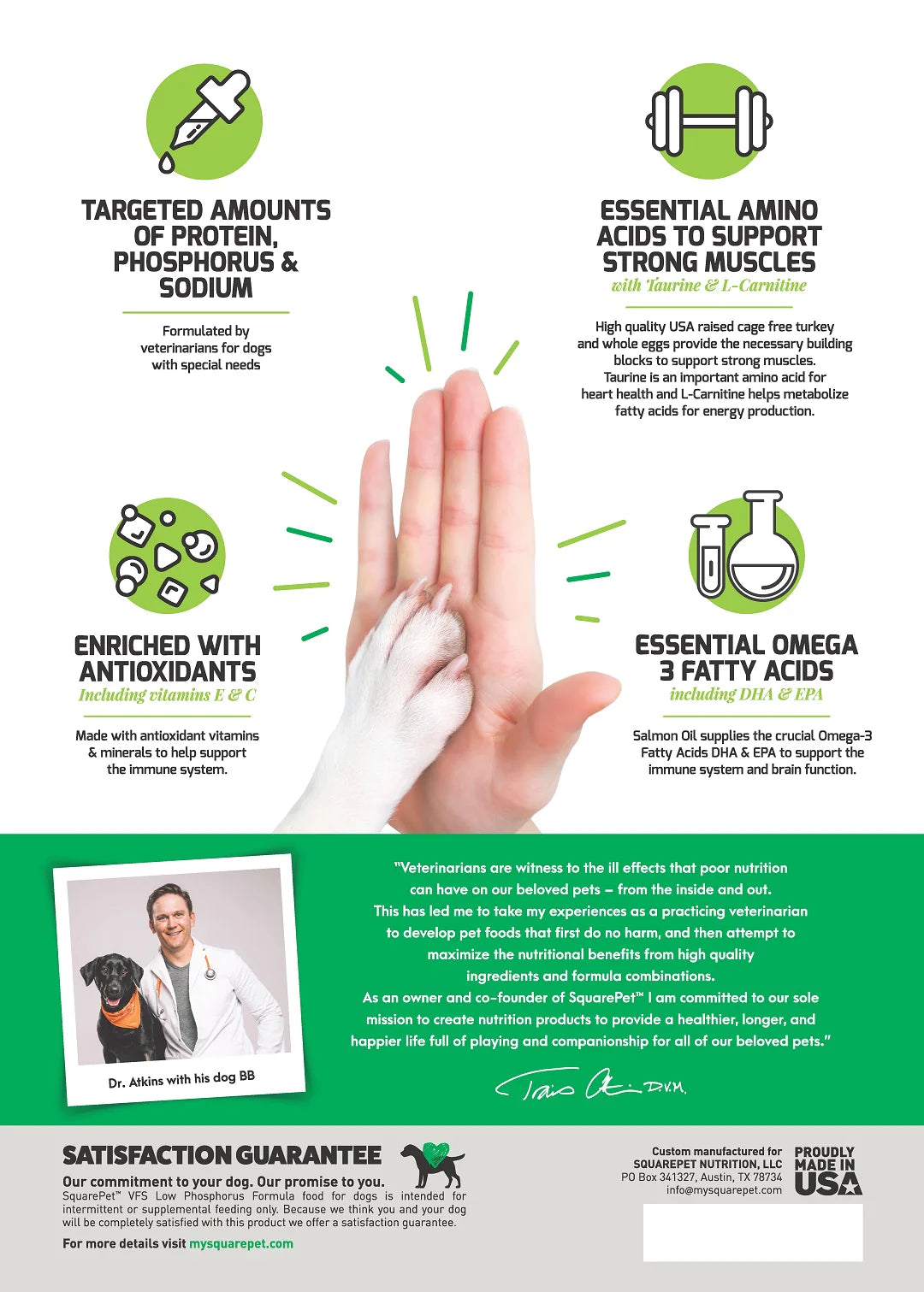 SquarePet® VFS® Low Phosphorus Formula has been developed by SquarePet’s team of veterinary professionals to support dogs who may benefit from a high quality, all-natural low protein, low phosphorus and low sodium dog food.